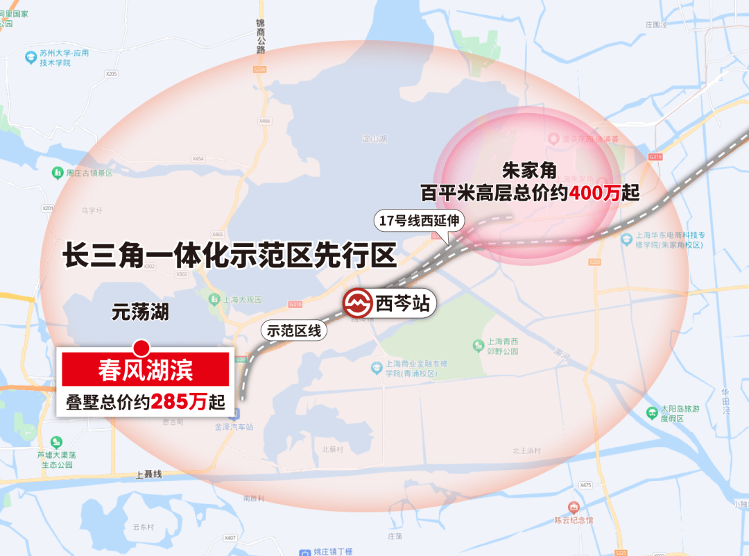 发展前景:春风湖滨地处青浦、吴江、嘉善交界,毗邻水乡客厅,水乡客厅由两省一市(江浙沪)共同打造,总投资约290亿元。